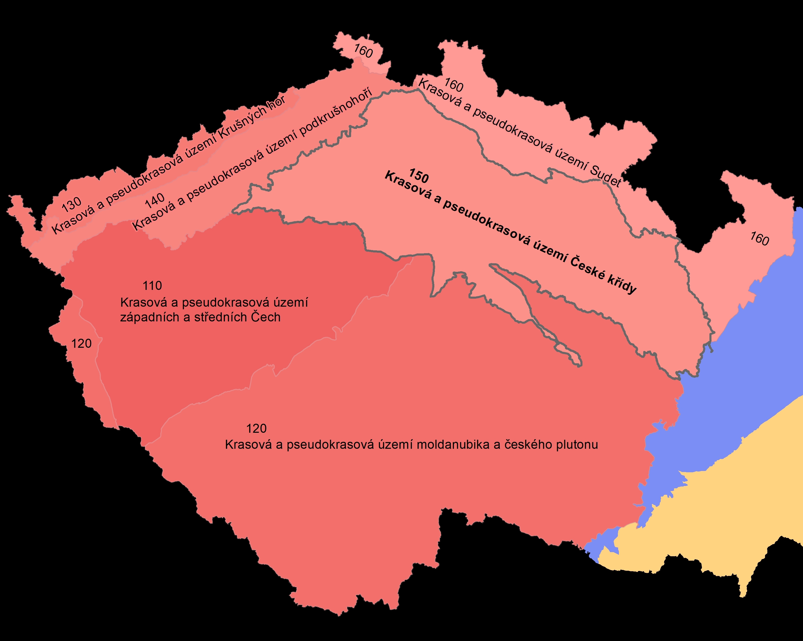 s pseudokrasovými oblastmi (geomorfologickými celky):