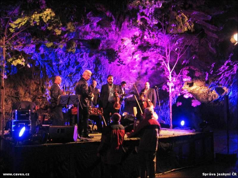 Informace o možnostech pronájmu a koncertů či eventů v jeskyních: